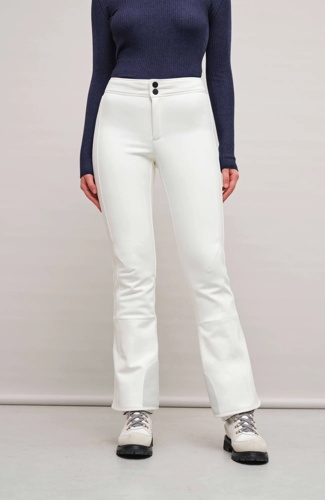 The softshell material of these jet pants is particularly robust, stretches lengthwise and crosswise, and is also reliably water and wind resistant. All this makes the pants ideal for skiing. The warming microfleece inside leaves a pleasantly soft feeling on the skin. The articulated knees increase mobility, the higher waistband ensures a secure fit. Thanks to the safety buttons on the waistband, you can also go down the slopes with a little more swing. The slightly flared trouser legs and the snow skirt make it easy to wear, put on and take off your ski boots.