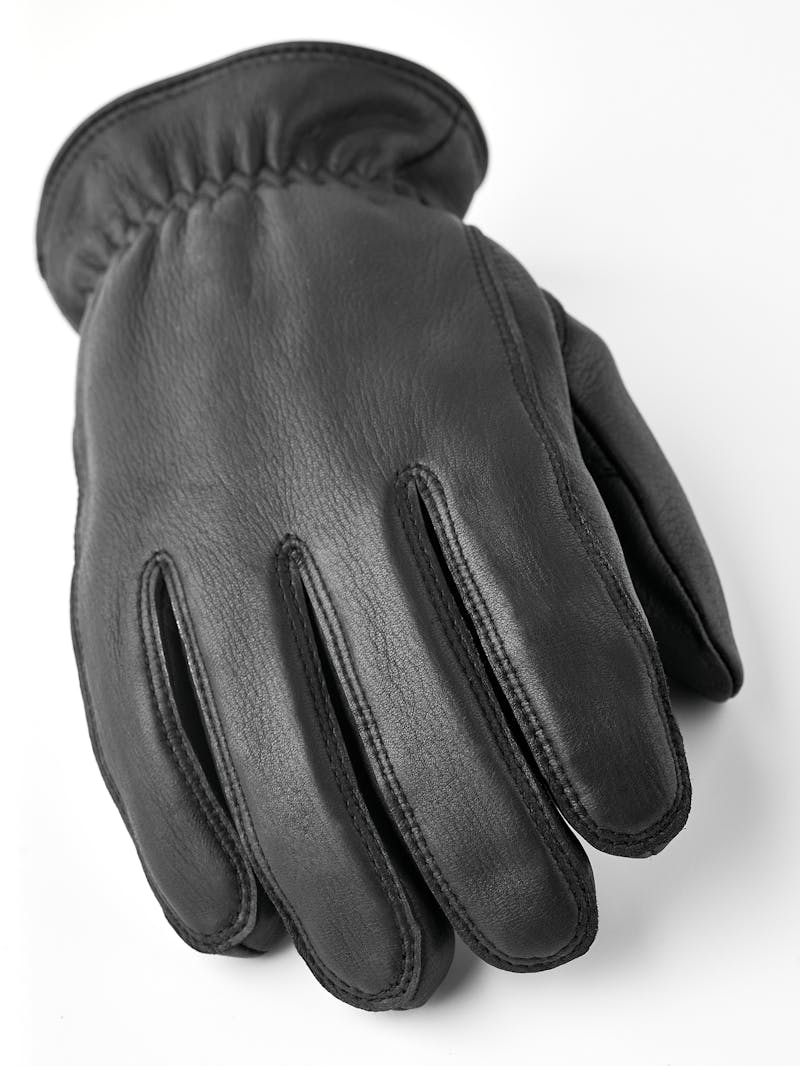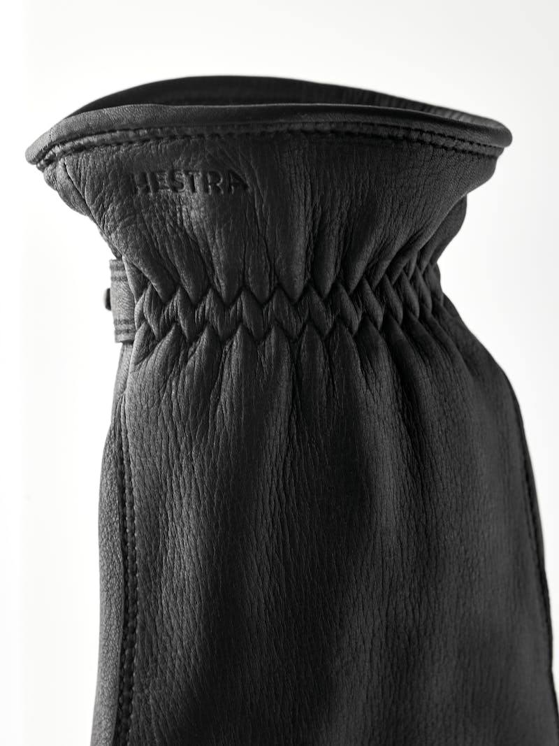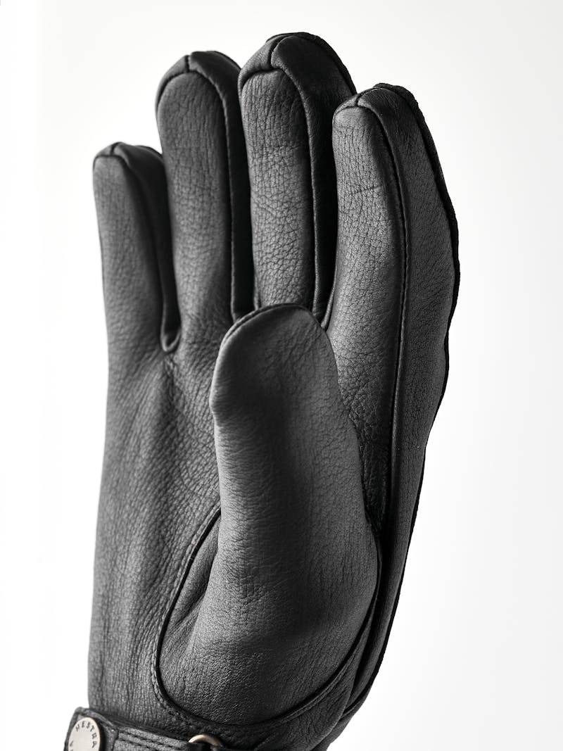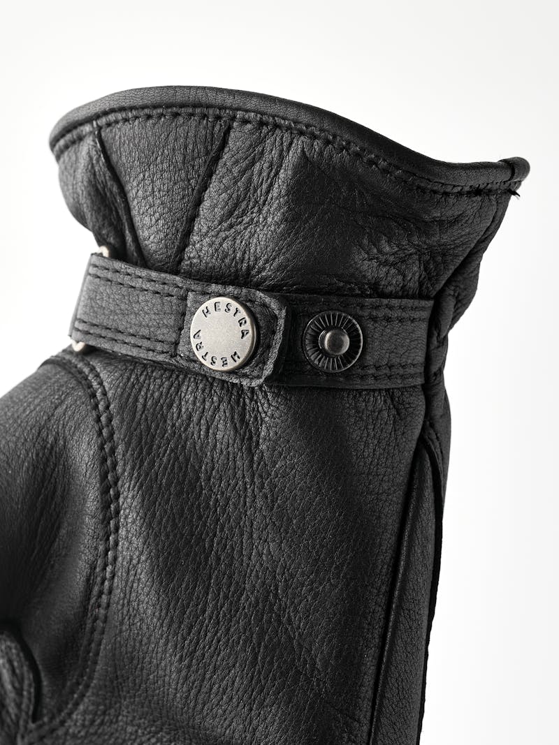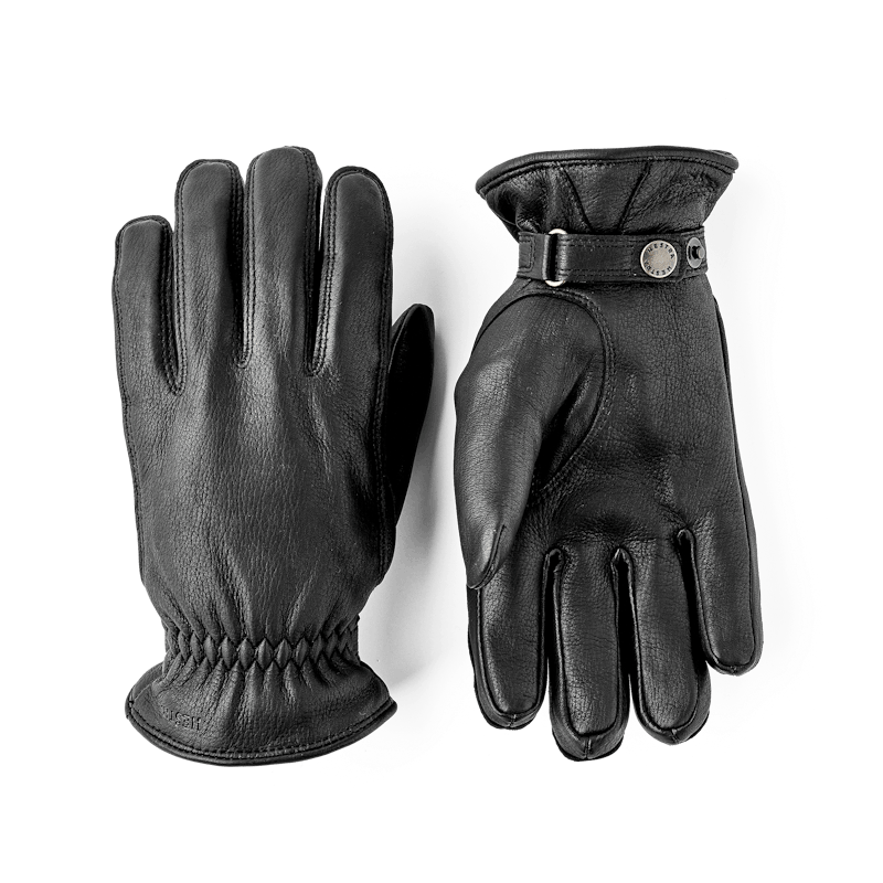 Warm winter glove in deerskin, a soft and supple glove material that insulates well. A timeless men’s model with a leather strap that adjusts with a press stud on the inside wrist. The wool fleece lining keeps the warmth in on chilly autumn and winter days.
