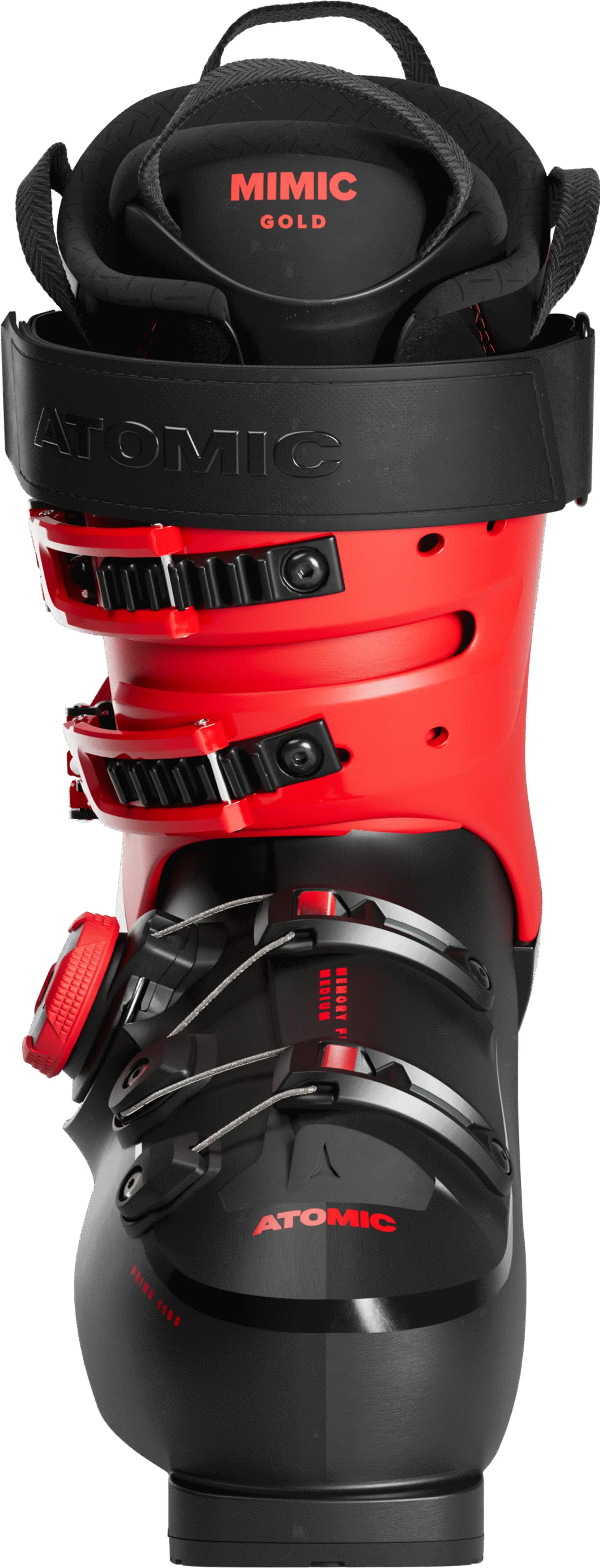 Lightweight shell and cuff construction with key structural areas reinforced for powerful skiing.