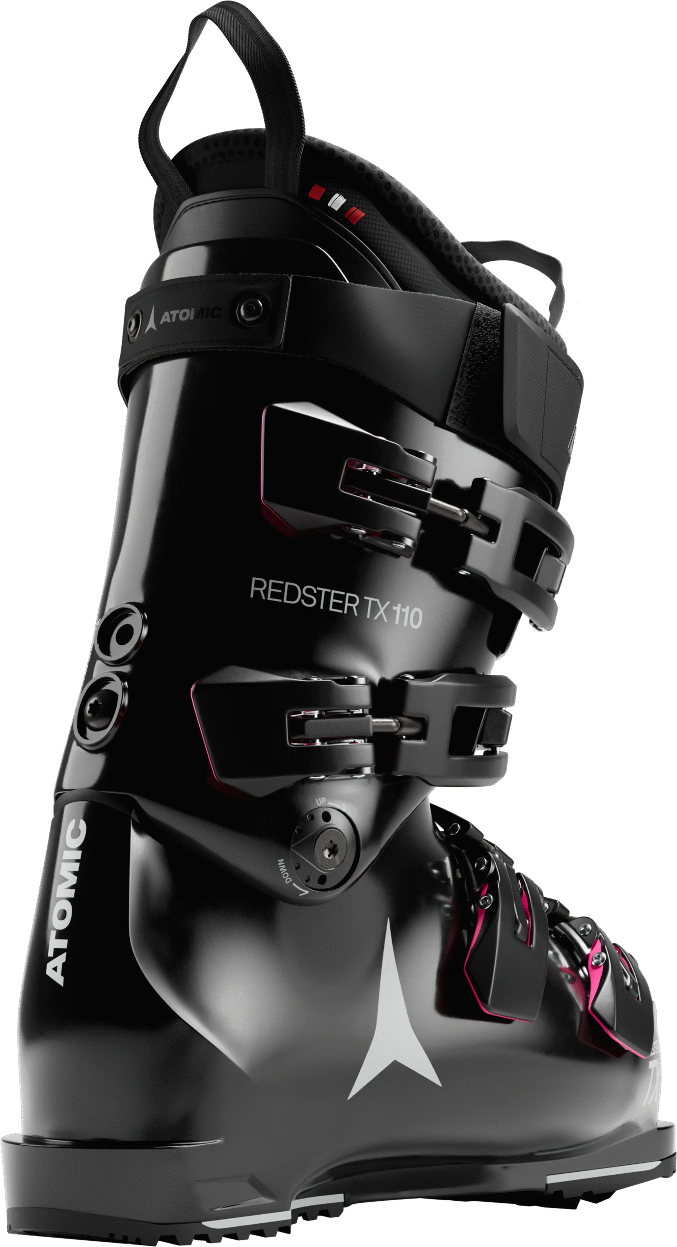 Redster TX has thick plastic for impressive shell stability yet flexes smoothly for all day skiing.