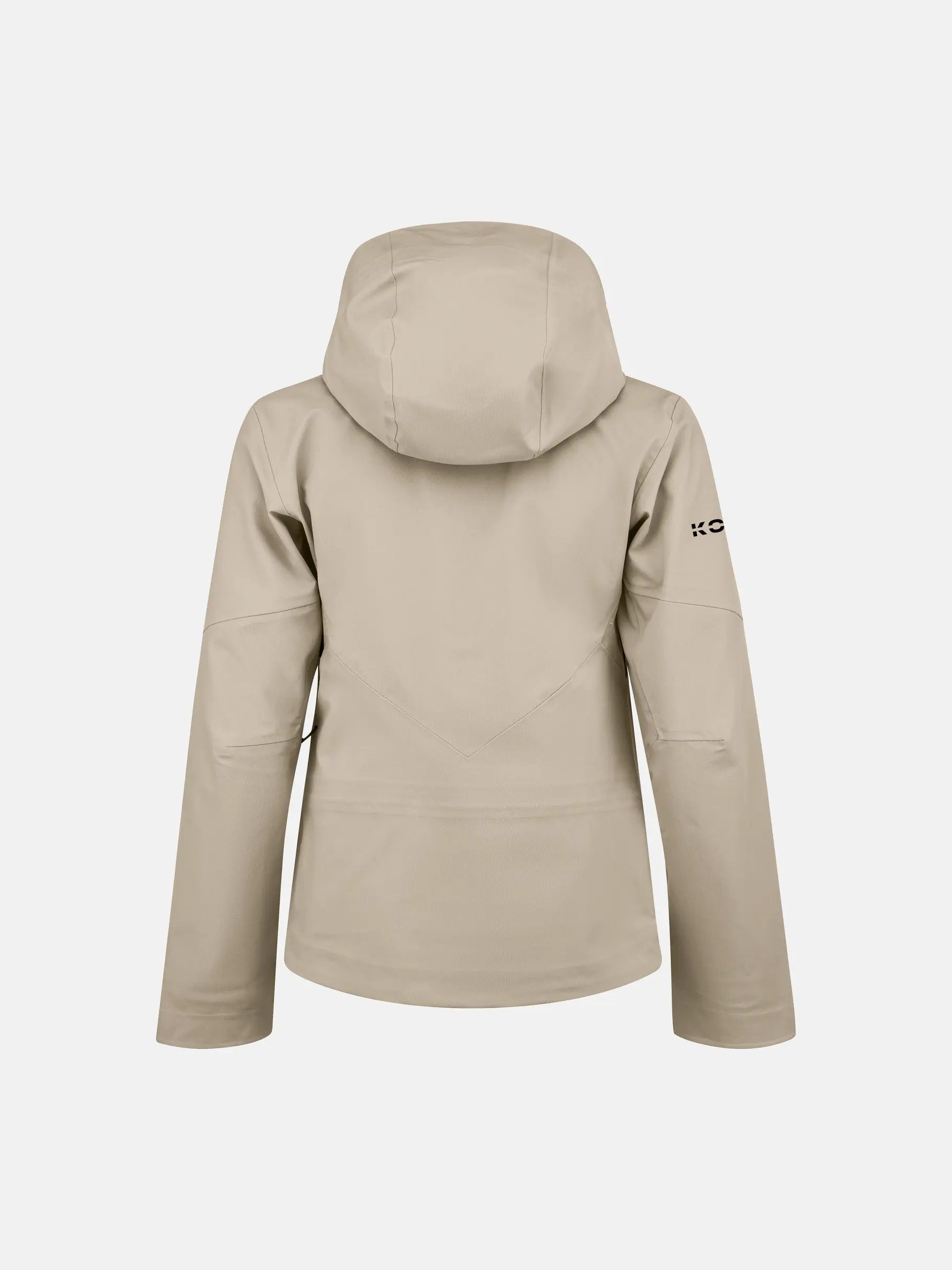 Designed for off-piste adventures, the KORE II JACKET WOMEN is waterproof, breathable and robust, as well as loose-fitting and sporty.
