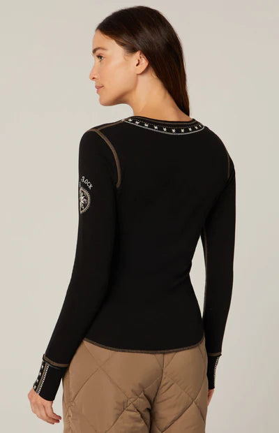 The Natasha pays homage to the Alps with delicate edelweiss flower embroidery and heritage stitching throughout. This longsleeve henley is a true Alp N Rock collector's style, combining our most-loved silhouette with attention to detail and Swiss-inspired aesthetics.
