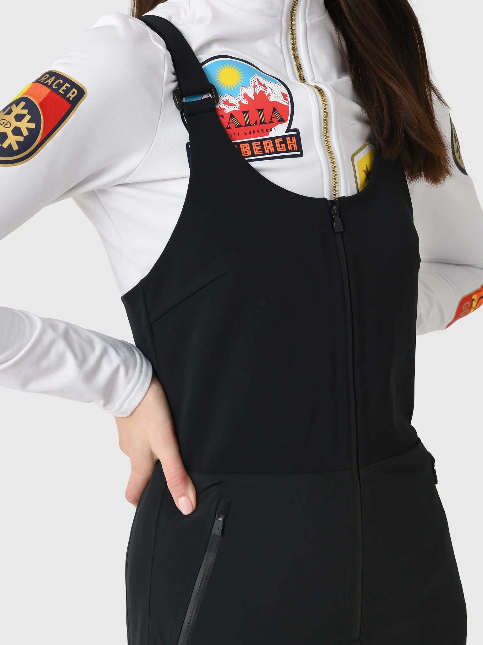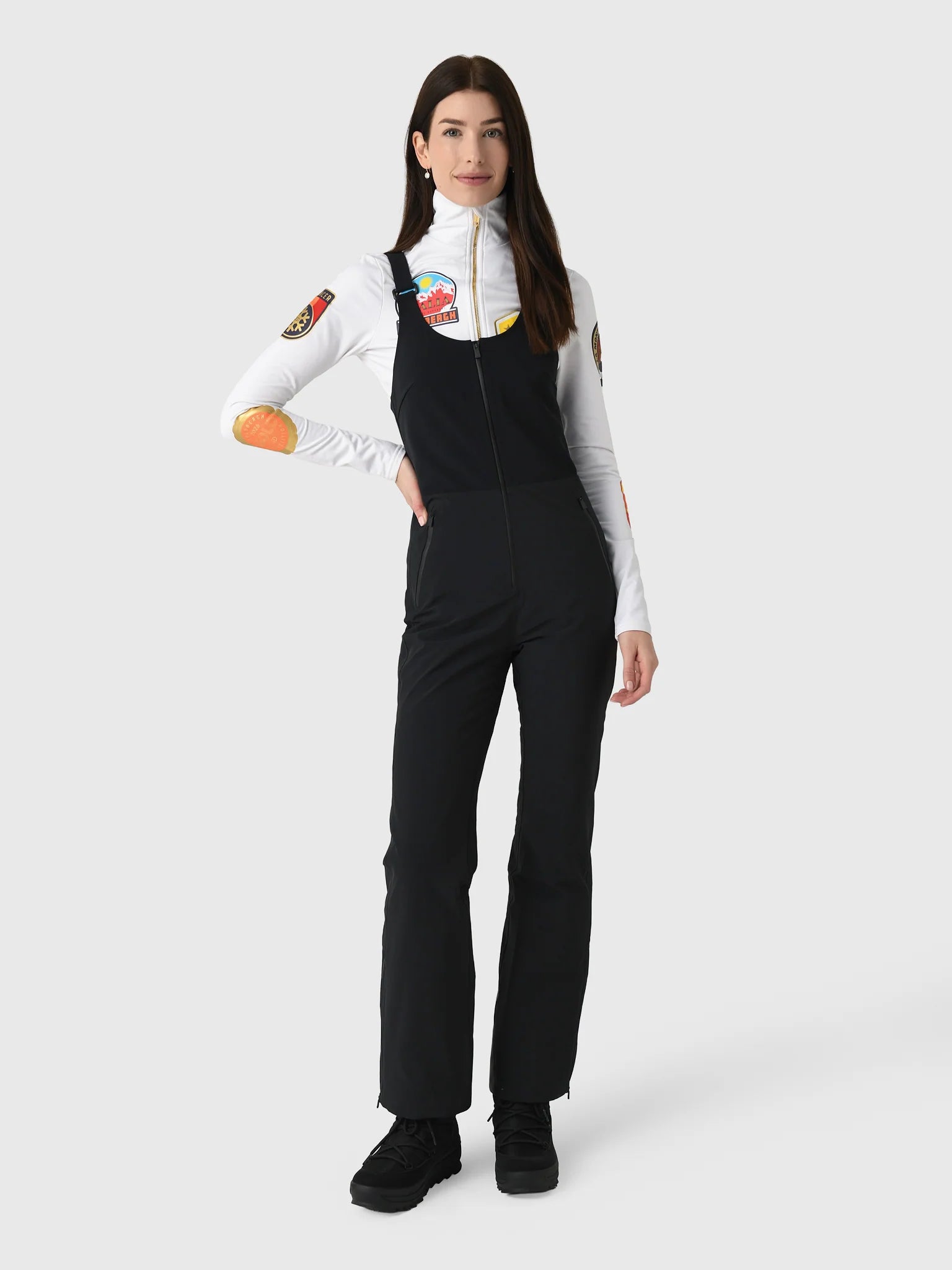 A feminine and fresh bib pant for the woman of today. A superior fit is complimented by stretch paneling and a razor back that is both sexy and functional. Our bib pant offers a striking proportion to our women's collection and pairs equally well with our classic Nuke Jackets as it does with the cropped Minnie and Daisy Nukes.