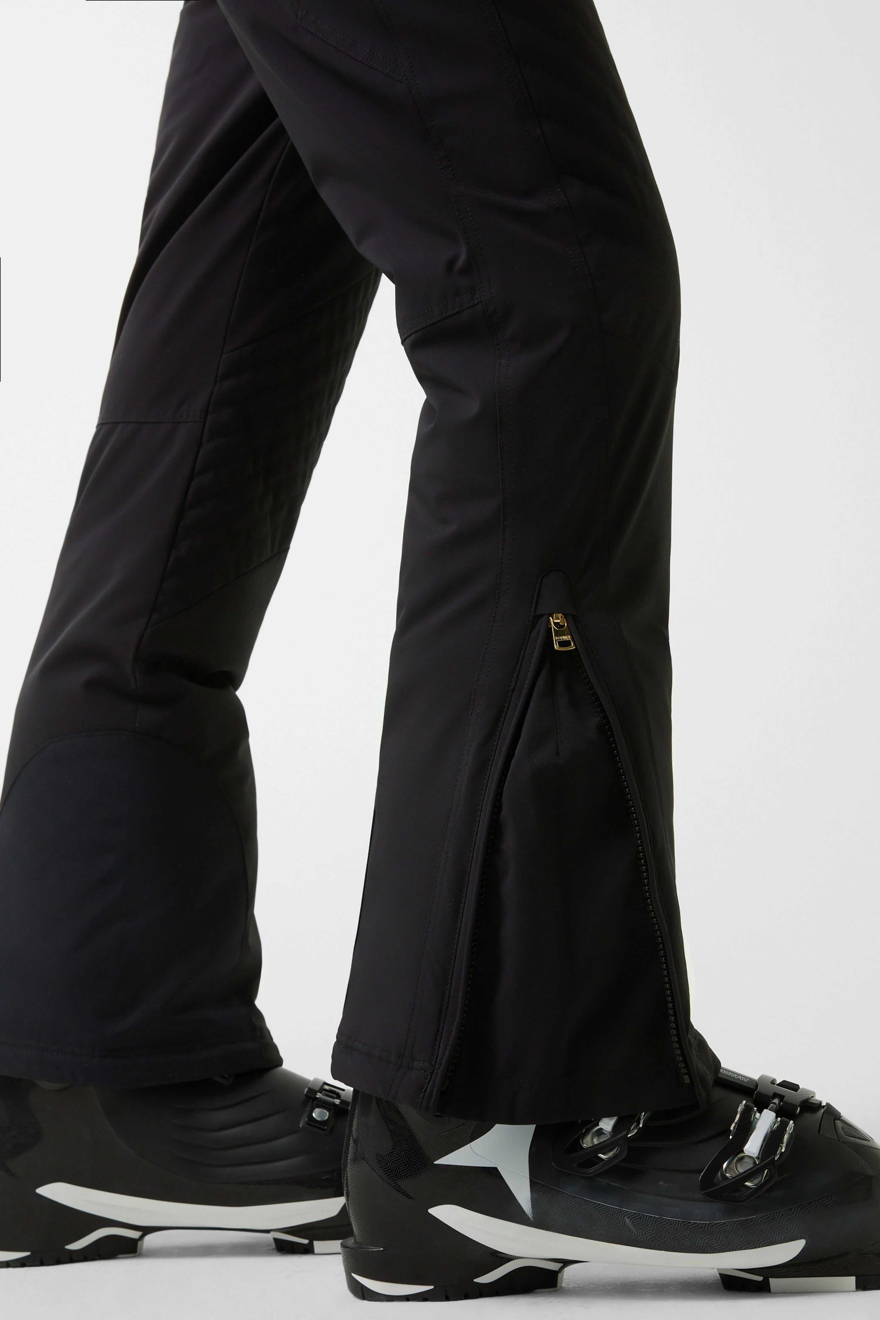 The Franzi ski trousers in water-resistant 4-way stretch with warming Comfortemp® filling and internal snow guard are a performance-driven item. The design is accentuated by the belt with metal buckle, zip pockets and stitched knee sections, complemented by stylish logo details. The padded lumbar protection ensures a comfortable finish.