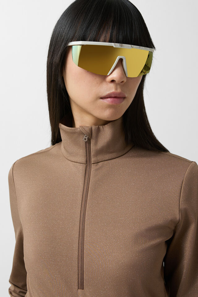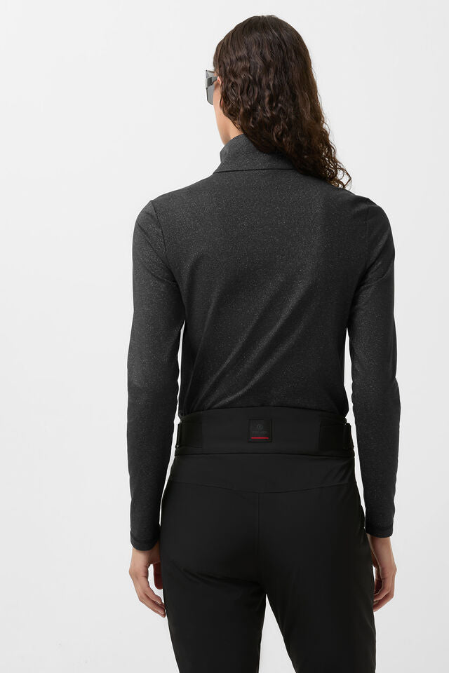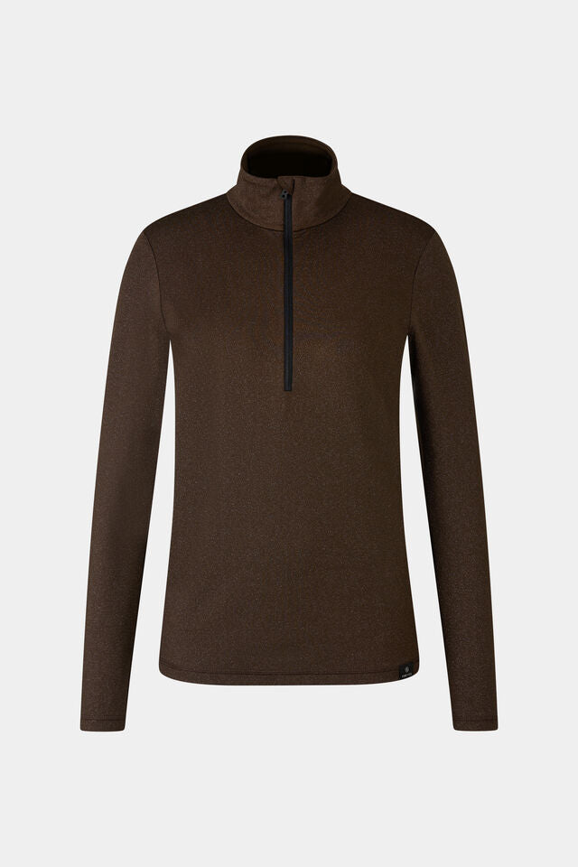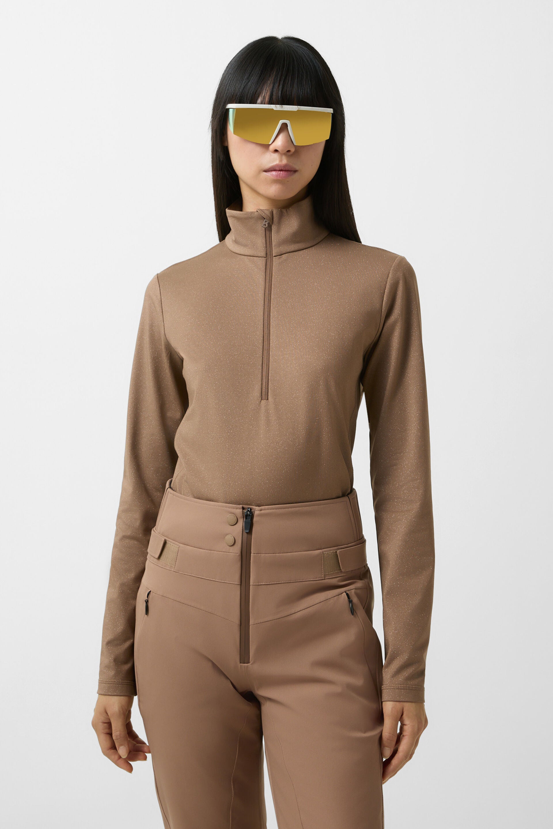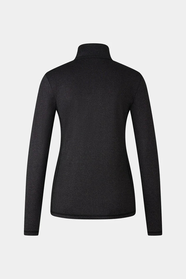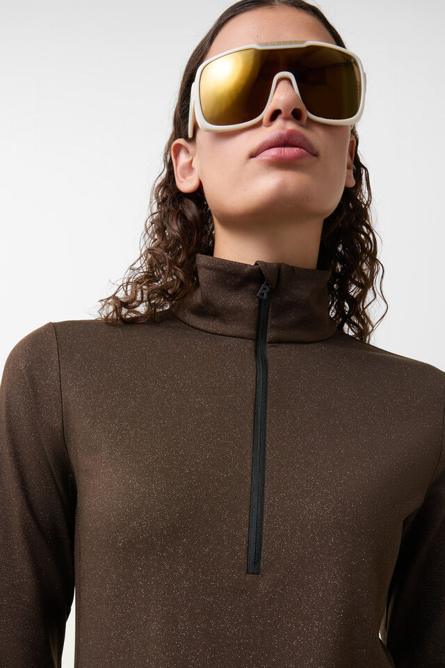 In a design with a glitter finish, the Margo first layer is a modern piece for functional looks, classically complemented by the stand-up collar with an attached zip. Overlock seams and the label flag at the hem accentuate the item. Quick-drying power stretch fabric ensures comfort during all activities.