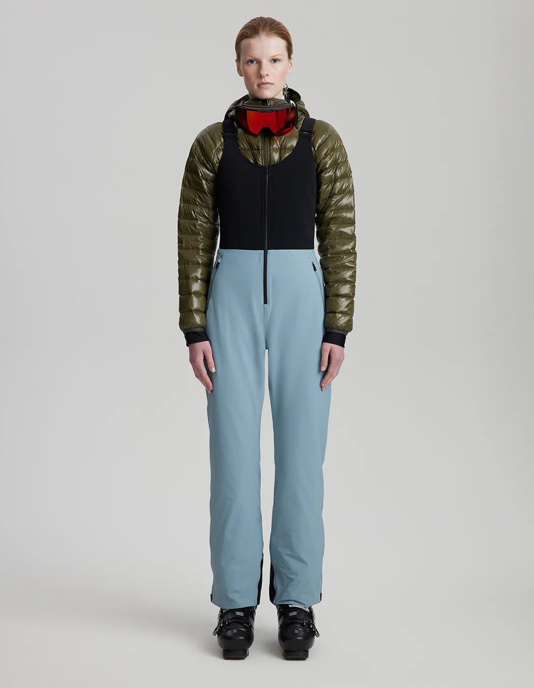 A feminine and fresh bib pant for the woman of today. A superior fit is complimented by stretch paneling and a razor back that is both sexy and functional. Our bib pant offers a striking proportion to our women's collection and pairs equally well with our classic Nuke Jackets as it does with the cropped Minnie and Daisy Nukes.