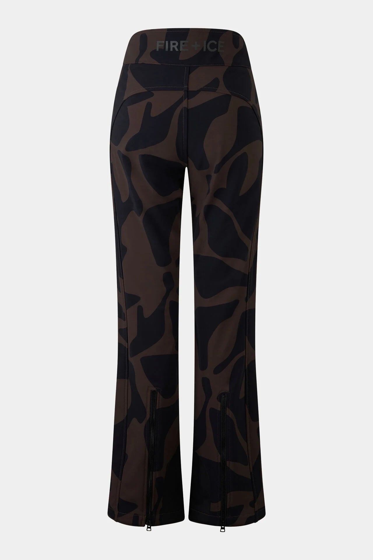 With their camouflage print design, the Ireen ski trousers are a modern style for winter sports, complemented by logo details such as the reflective lettering on the back waistband. The functional piece highlights the 3-layer 4-way stretch fabrication, while the edge protection at the cuffs ensures a harmonious finish.