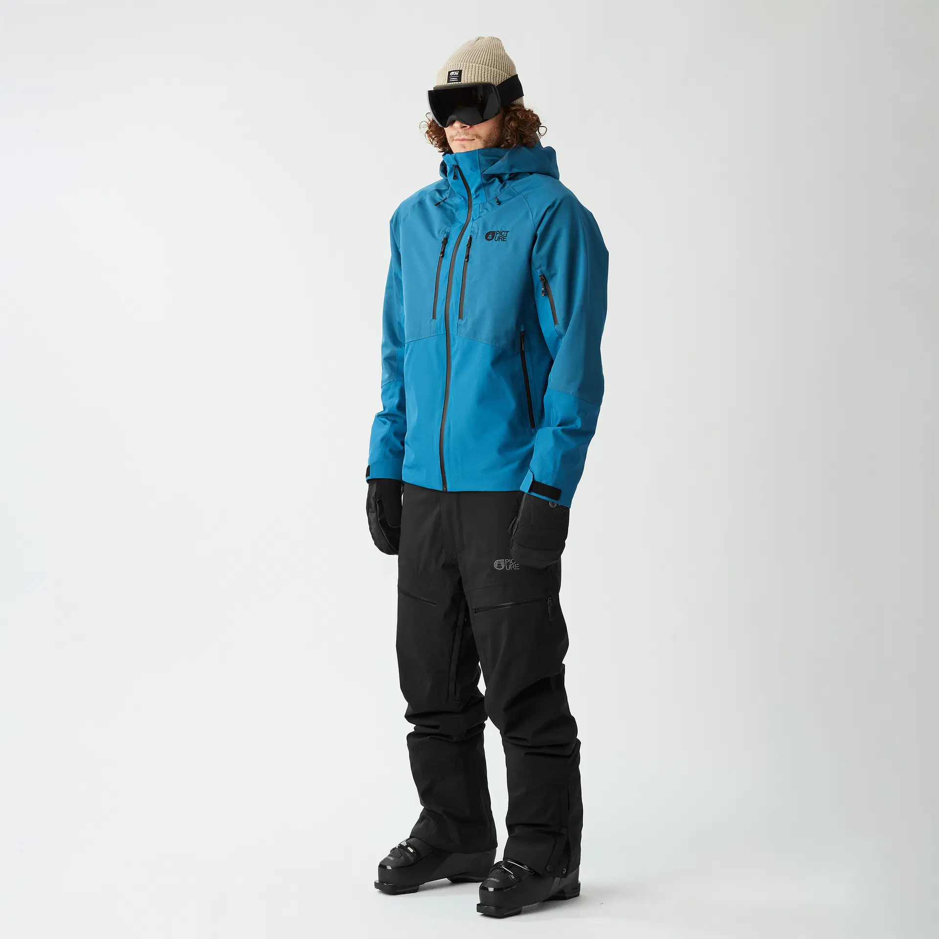 The Goods two-layer jacket will follow you to ski resorts around the world. This ski jacket, with its textured fabric and vibrant colors, is a true timeless piece. Eco-designed with circular polyester sourced from textile waste, it features a 20K/20K membrane for unparalleled breathability and waterproofing, reinforced by a PFC-free durable water repellent treatment and waterproof zippers. Designed primarily for versatility, we have included essential technical features, starting with reinforced high-friction areas for durability. This jacket also has zippered vents for easy temperature control during the most intense moments, while the quilted synthetic down lining provides extra warmth. Finally, for improved protection and fit, the hood and cuffs are adjustable. This insulated jacket is equipped with everything you need for an exceptional day on the mountain, even on the coldest days on the slopes.