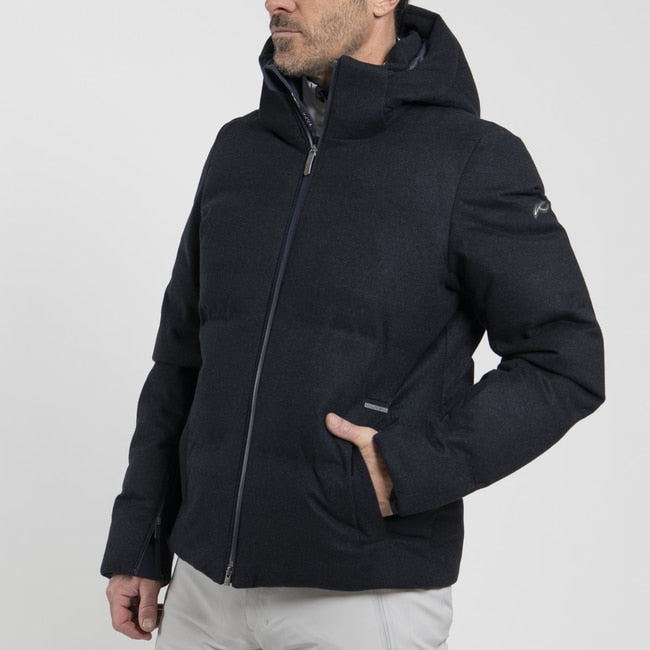 Wrap yourself in opulent warmth and innovation with this KJUS Orange Label jacket, crafted from luxurious Loro Piana cashmere fabric made in Italy. Enhanced with graphene lining for superior thermoregulation, its breathable, four-way stretch provides unmatched comfort and mobility. Keep your phone's battery warm with the graphene-lined pocket and enjoy moisture renewal cuffs for added skin hydration. The Hideaway snow skirt ensures a seamless transition from the slopes to everyday life, making this jacket perfect for any adventure.
