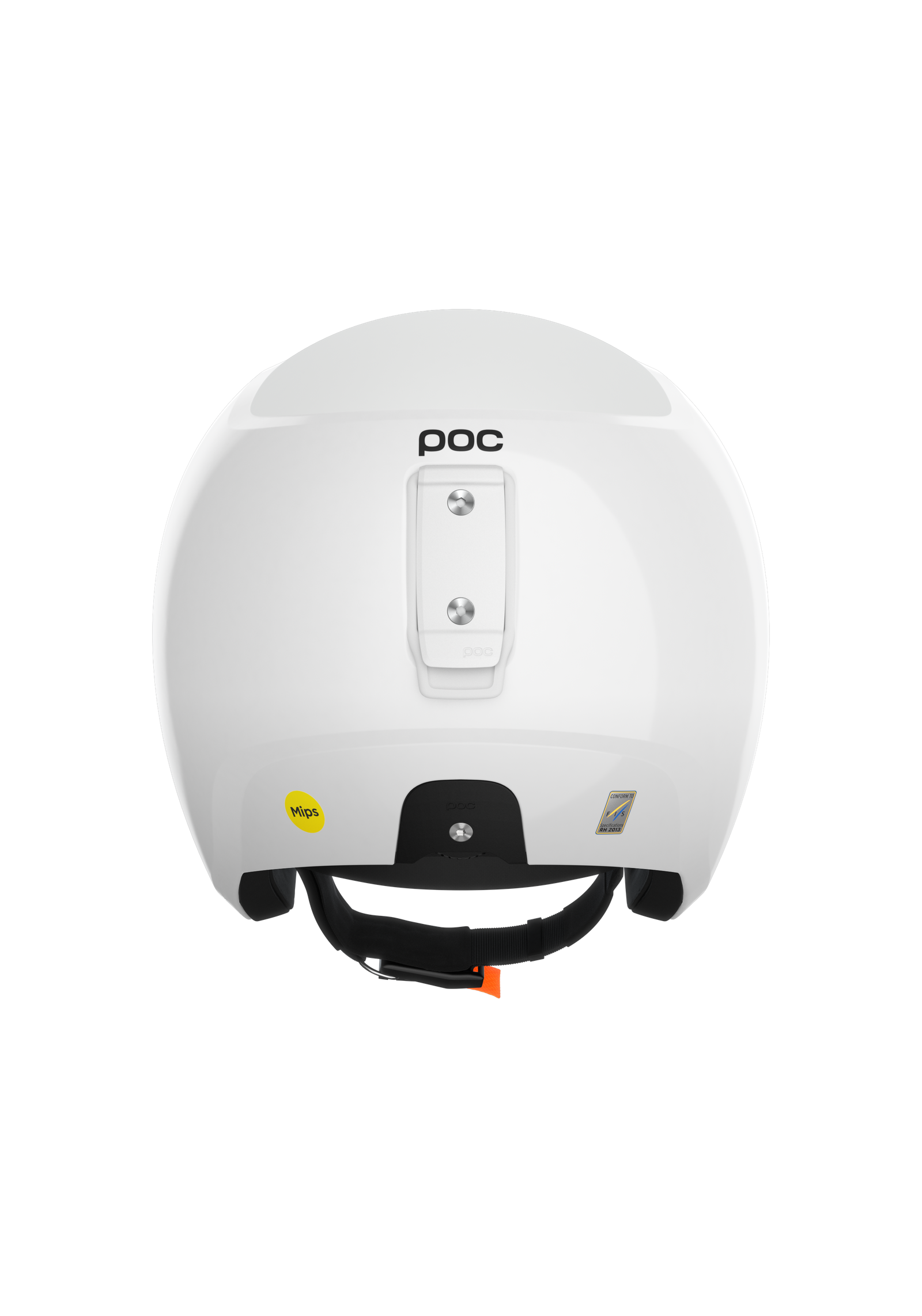 A flexible clip at the rear of the helmet keeps goggles securely attached.